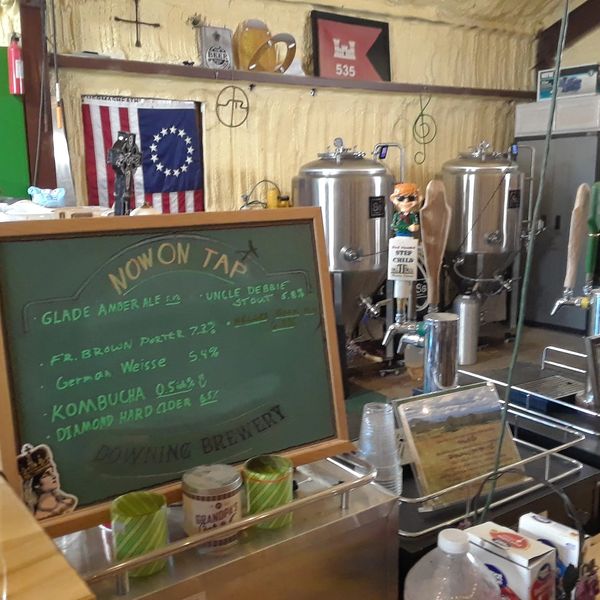 Downing Brewery sits about a mile southeast of Hadley Mountain on the very rural nourthwest corner of Cherokee County. We’ve always seen good beer as woven into life, its beginnings and endings, and into all the joys and sorrows of families and friendships in between. The brewery is named after the location, an area once known as Downing, with Downing Cemetery just to our North and the old Downing school house to our South. Lewis Downing was the first Cherokee Chief after John Ross a few years after the Trail of Tears and is buried in the Haner-Adair Cemetery about seven miles north. We are seated next to two beautiful rings of cedar trees, once known to children as ‘the glade” which inspired our signature Glade Amber Ale. Come sample the Amber or any of our other brews in the back-woods, family friendly atmosphere of beautiful northern Cherokee county. We aren’t that easy to find, but the drive and brew will be worth your time!